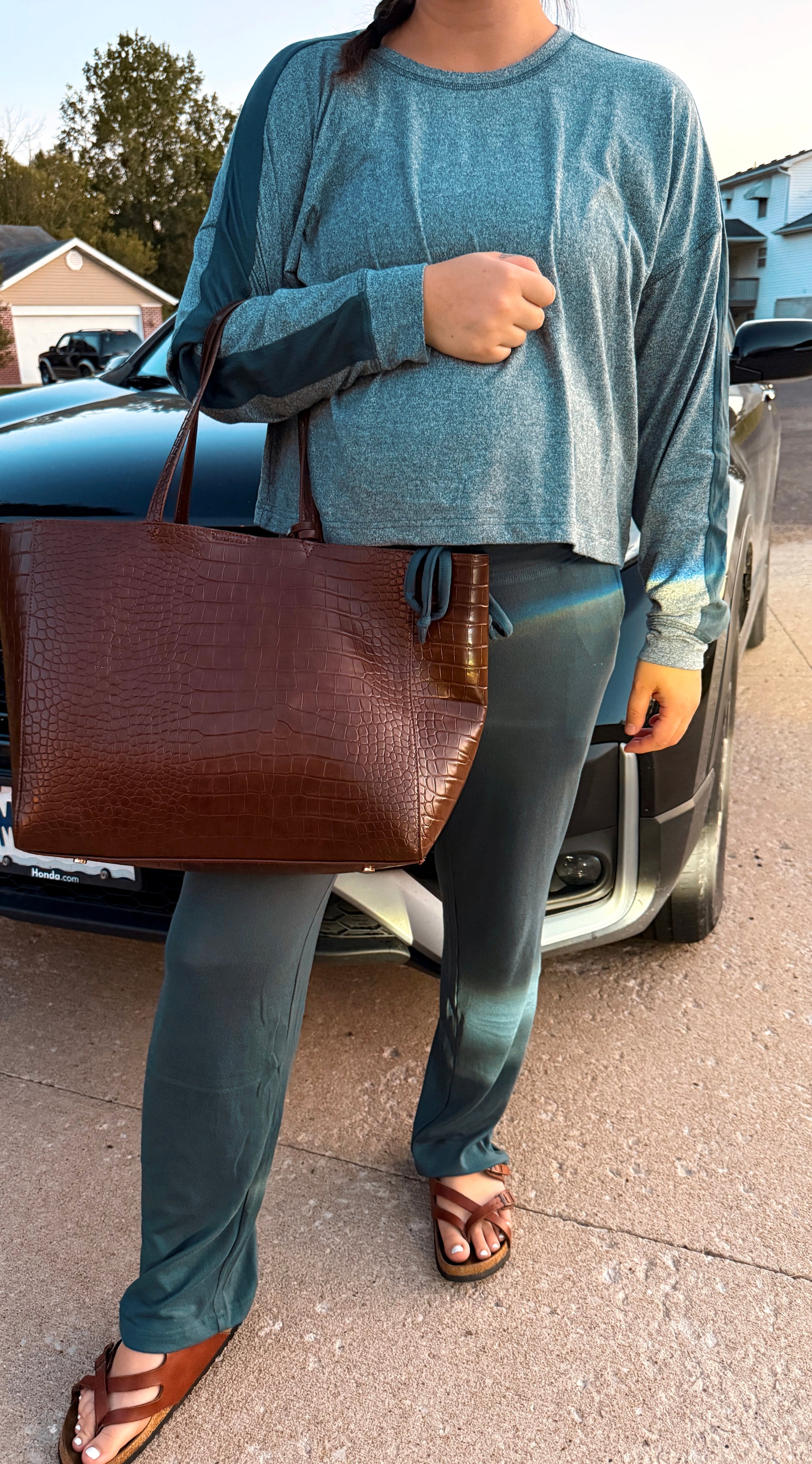 Unwind in effortless style with the Brushed Hacci Warm Line Lounge Set, featuring a long-sleeve top and wide-leg pants designed for all-day comfort. The pants include a drawstring waistband and side pockets for a relaxed fit, while the coordinating top is accented with a matching contrast stripe along the sleeves. Crafted with a reversed brushed interior, this soft hacci knit set feels as good as it looks—perfect for lounging in or stepping out casually polished.