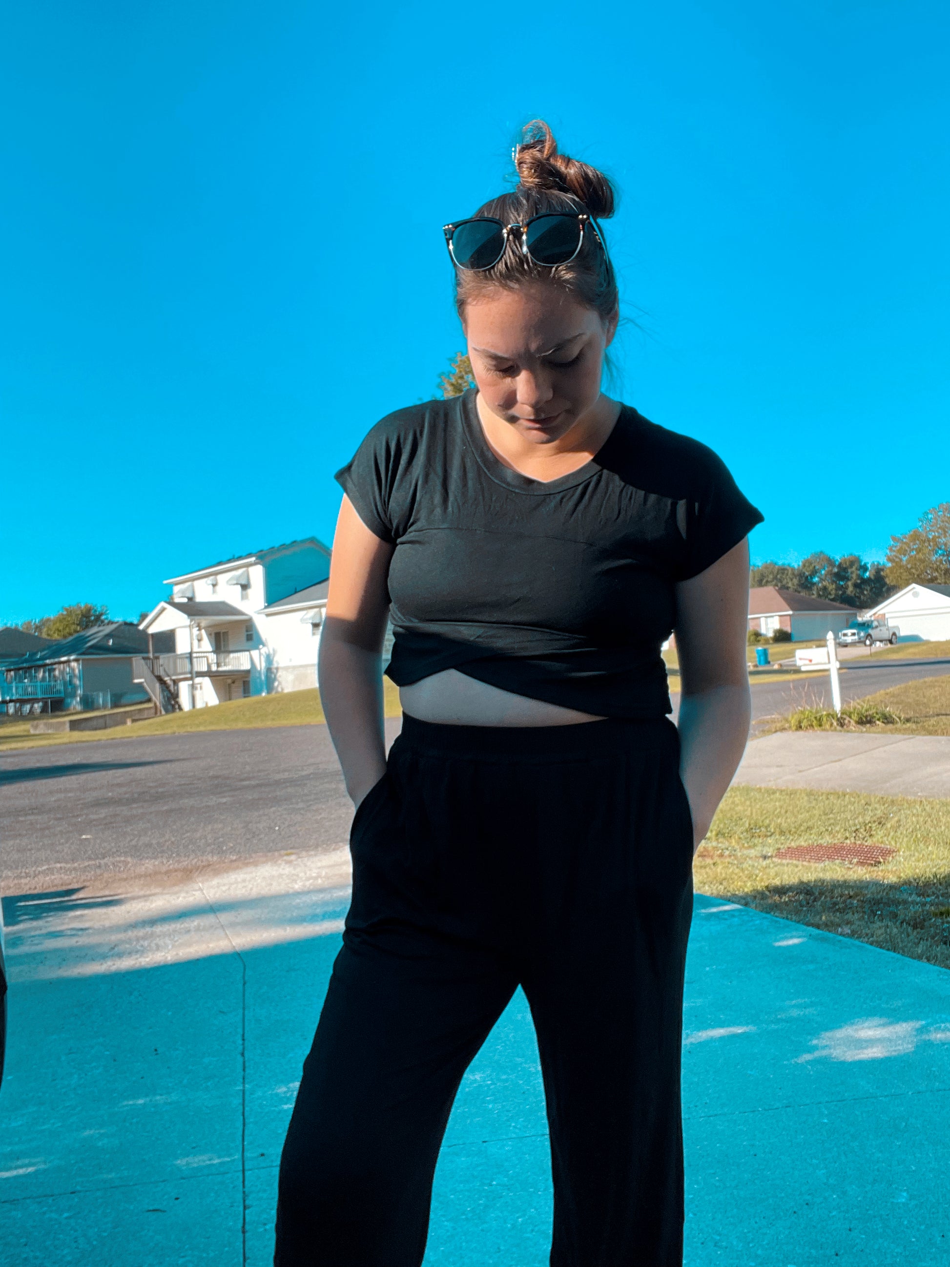 * Polyester and Cotton * Fabric with Stretch * Solid Color * Crossover Detail * Sleeveless * High Rise * Wide Leg * Side Pockets * Casual Fitting